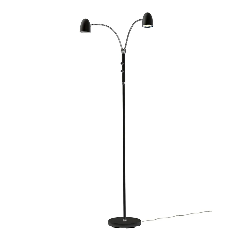 Artikelnr: G 898/16 EAN / GTIN: 7330525898169 Material: Metall Färg: Svart Höjd cm: 140 Diameter cm: 23 Watt: 35W Sockel: GU10 Antal Ljuskällor: 2 Inklusive ljuskälla: Nej Dimbar: Ja, ljuskällor går att dimra separat