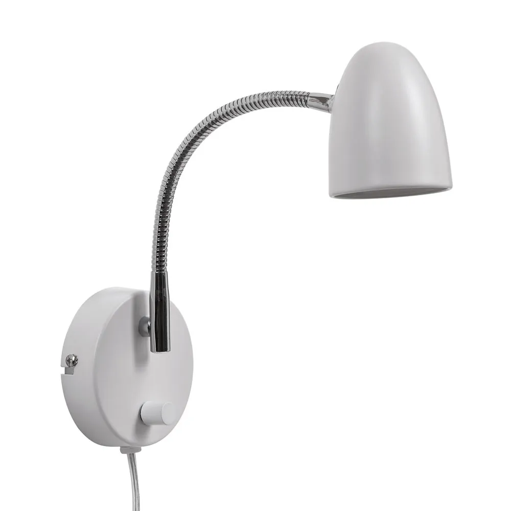 Koster vägglampa i Vit. Ljuskällan är utbytbar och armaturen är försedd med vriddimmer för att du enkelt ska kunna ställa in ljusstyrkan för ett behagligt sken.