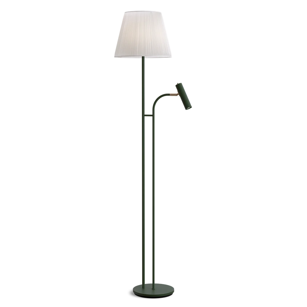 Slender golvlampa grön med läslampa sälj utan skärm.